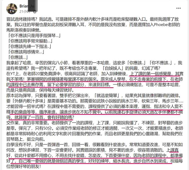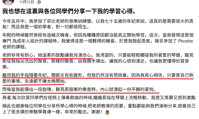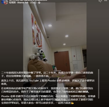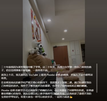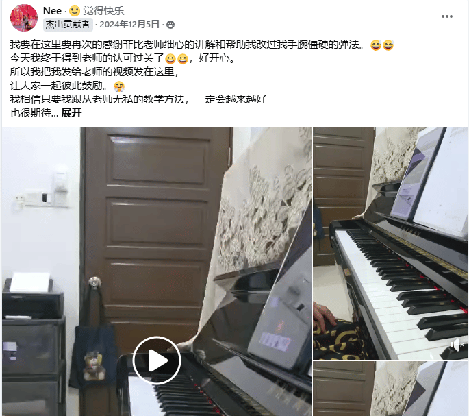今年我送给自己最好的礼物就是跟菲比老师学钢琴。老师太棒了!
