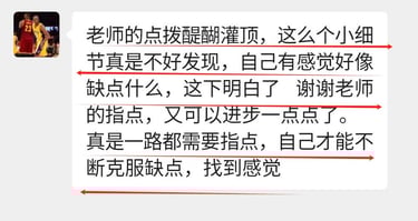 非常感谢老师的细心讲解并帮助我改掉了手腕僵硬的坏习惯