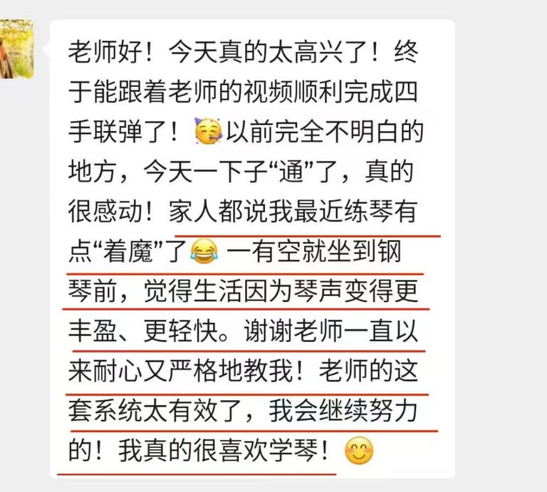 这不是一门速成课,而是一次 认真而温暖的成人钢琴旅程。我希望你知道:你的钢琴梦,值得被认真对待。而我,就是那个认真对待你梦想的老师。